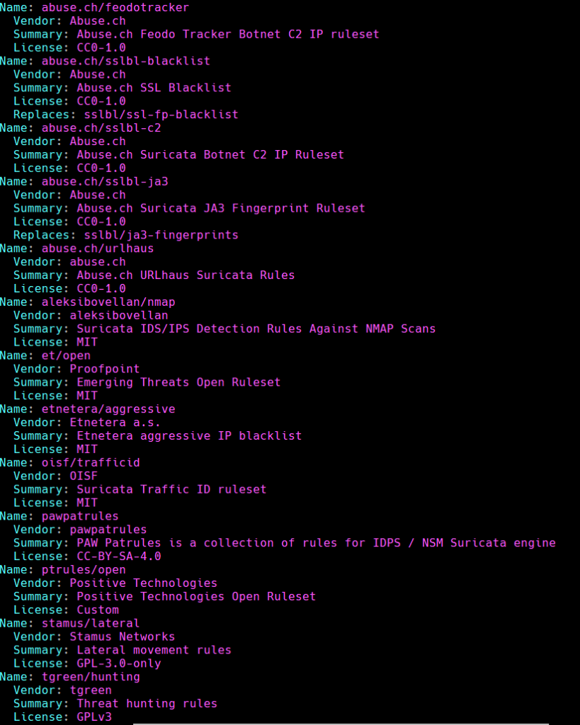 sudo suricata-update list-sources --free