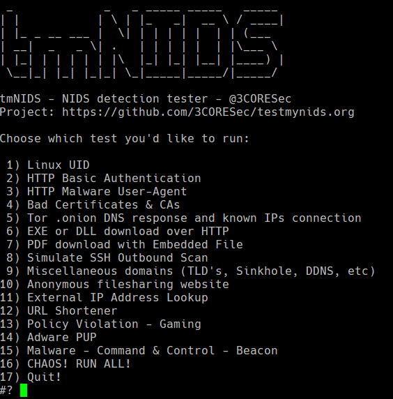 I used the script at https://github.com/3CORESec/testmynids.org to test it.